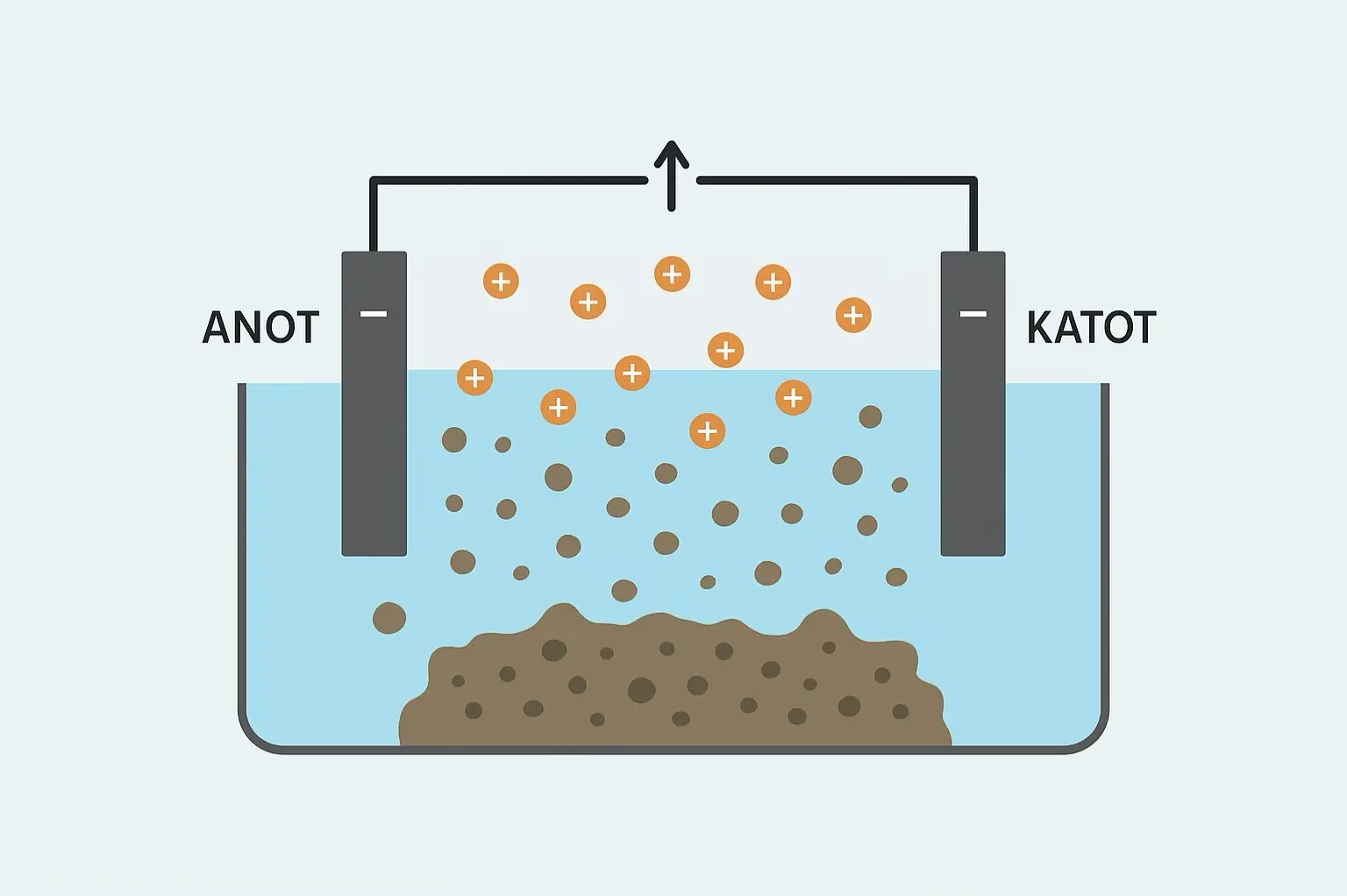 Elektrokoagülasyon (EC), kimyasal ilave gerektirmeden, su ve atıksulardaki çeşitli kirleticileri etkili şekilde uzaklaştıran elektrokimyasal bir arıtma yöntemidir. Bu yöntem, yüksek giderme verimine sahip, basit ve etkili bir süreçtir. Kimyasal oksijen ihtiyacı (KOİ), bulanıklık, amonyak, renk ve katı maddelerin giderilmesinde önemli potansiyel sunar .