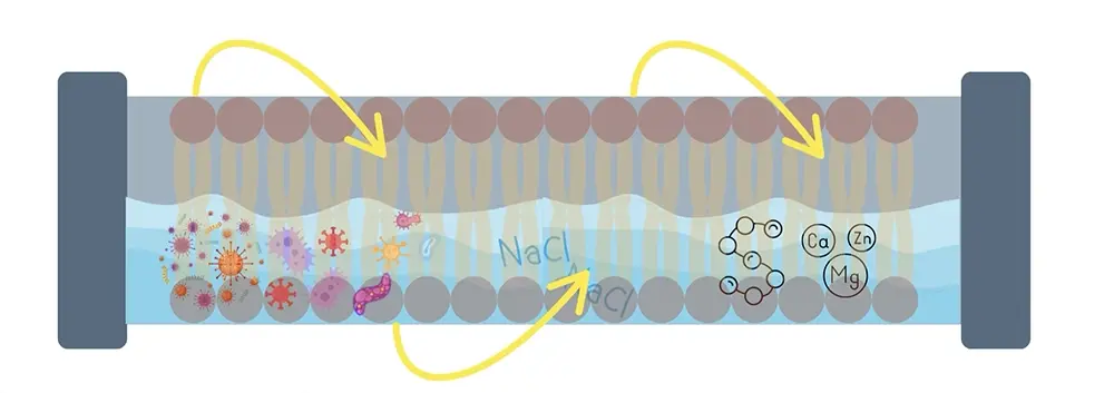 - Membran Filtrasyonu: Yarı geçirgen membran, su moleküllerini geçirirken çözünmüş tuzlar, metaller, bakteriler, virüsler ve organik kirleticileri tutar.